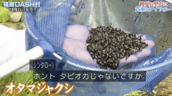 たくさんのオタマジャクシが活発に動くため水面が揺れる中、構わず国分さんは網を水面にいれました。これを見た他のメンバーたちからは、「えー大将、やっちゃいますか」との声が漏れる中、国分さんは大量のオタマジャクシをすくい上げました。岸さんは、「気持ち悪…」と漏らしドン引きしながら、「カエルはちょっと苦手で…すいません」と謝った一方で、水槽に入れた多くのオタマジャクシたちを見て、「これが全部カエルになるってこと、すごいっすね」と、森本さんはケロリとしていました。