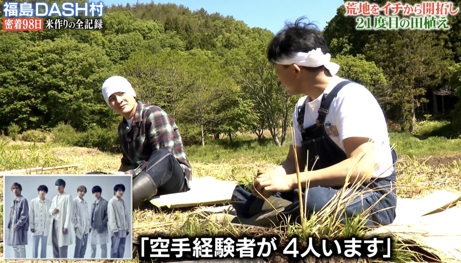 この日は、『TOKIO』城島茂さん(50)、国分太一さん(46)、『SixTONES』の森本慎太郎さん(23)と『King & Prince』の岸優太さん(25)が福島県を訪問しました。かつて、「DASH村」としていた地域より約5キロほど離れた葛尾村にて21年目のとなる米作りに挑みました。