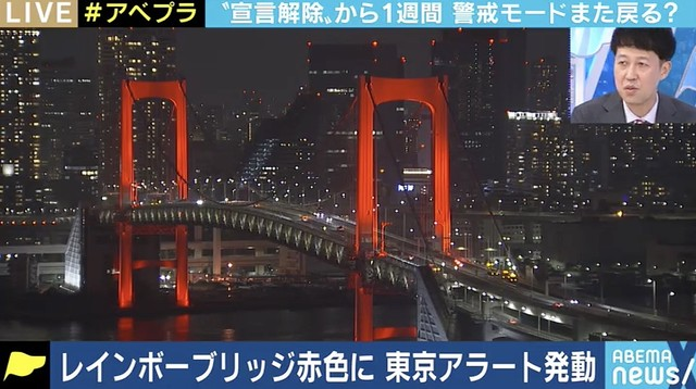 「専門家の意見も踏まえ、東京アラートを発動する」。2日午後10時前に開かれた対策会議で、小池百合子知事は厳しい表情で そう表明しました。同11時すぎにレインボーブリッジや都庁を赤色にライトアップし、都民に発動を周知しました。