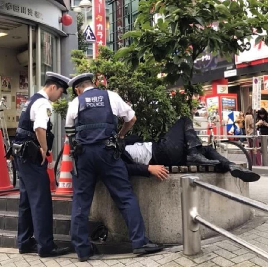 東京の街でお酒を飲んで、酔い潰れた人を発見するのは珍しくありません。