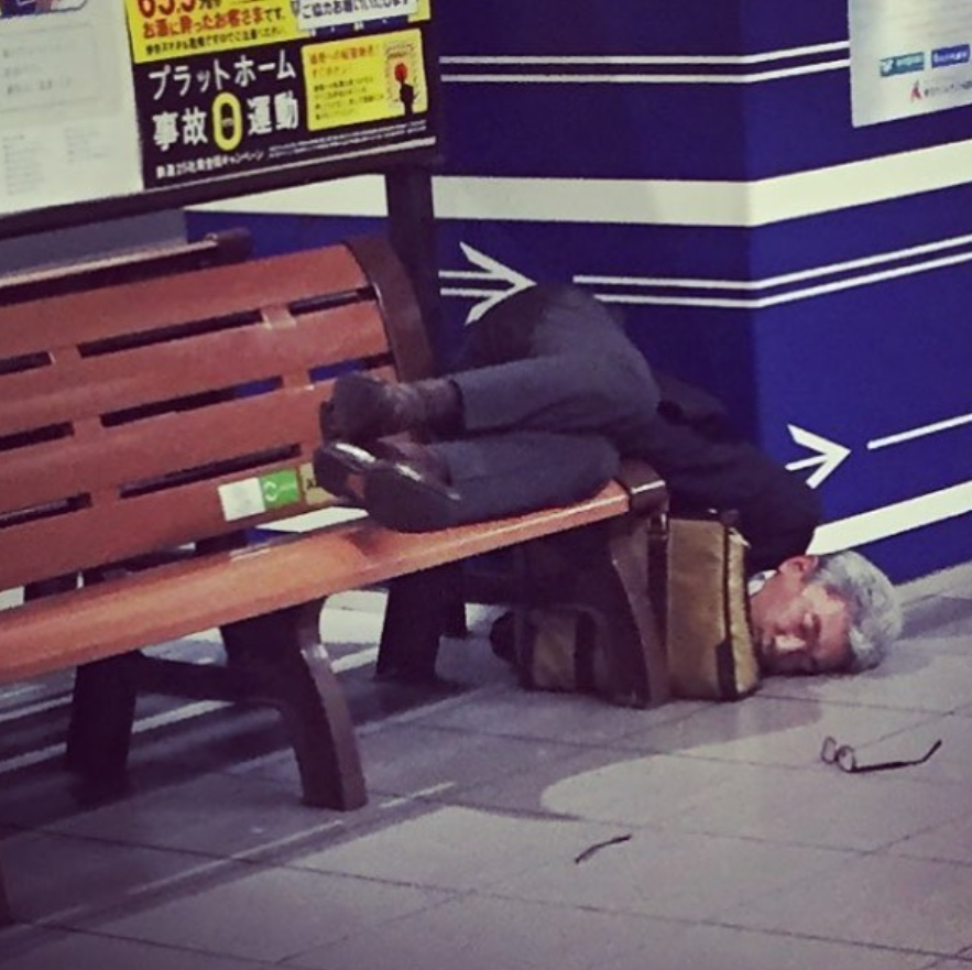 「駅のベンチで寝てしまうのは昔からよく見る光景」