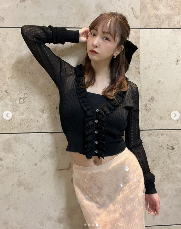 ガッツリ肌見せしているわけではありませんが、ヘソ見せは珍しいですね(笑)