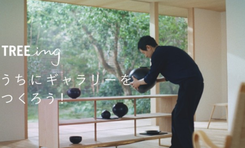 CM中、加瀬さんが、「うちにギャラリーをつくろう!」と切り出し、柔らかな太陽光が差し込むリビングにてオープンラックに個性豊かな陶器を置いたり、蕎麦打ちに挑戦。