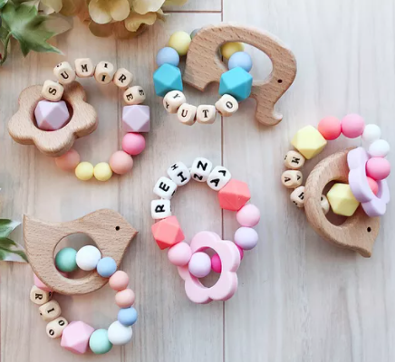 歯固めジュエリーとは、歯が生え始めた赤ちゃんの気を紛らわせる育児グッズで、シリコンや木製のビーズでできたアクセサリー。