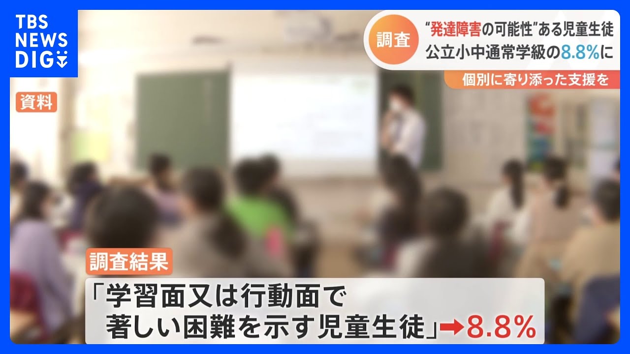8%に学習や行動に困難のある発達障害の可能性があることが、文部科学省の調査で分かりました。2012年の前回調査から2.3ポイント増えており、35人学級であれば3人ほどの割合となります。増加の背景には、発達障害への認知の広がりがあるとみられているようです。