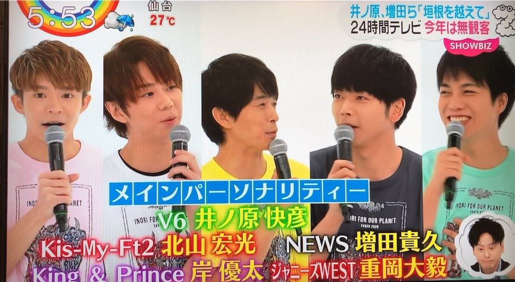 「ジャニーズ事務所きっての“スキャンダルに無縁”なメンバーを、見事に揃えたなという感じ。イノッチといい増田くんといい、清潔感は抜群だと思うけど、数字は持っていなさそう。売れっ子はいないし、地味な印象は拭えない。日テレもコロナ禍での番組強行は批判を受けるとわかっていて、なるべくクリーンなイメージのタレント、いわば緩衝材になるようなメンバーを集めたんでしょうね。やり口が姑息ですね~。正直、今回選ばれた5人は気の毒ですよ。だってどう考えても、今年は状況が状況なだけに募金額は伸びないでしょうし、マラソンもないんじゃ視聴率を稼ぐのも難しい。むしろ僕は敗戦処理をさせられる 5人を 応援したい気持ちになってきましたね(苦笑)」