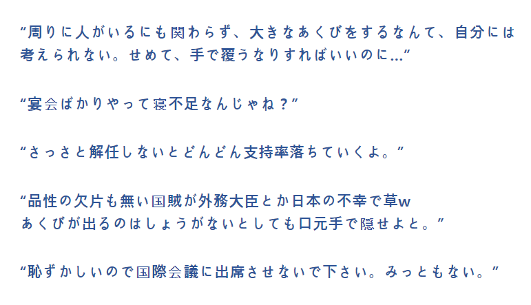 Twitterでは、あるユーザーが「使命感なく何も考え無ければ、眠たかろう」というコメントとともに、林芳正外務大臣が“大あくび”をしている写真を投稿しています。その豪快なあくび姿は瞬く間に拡散され、批難を浴びています。