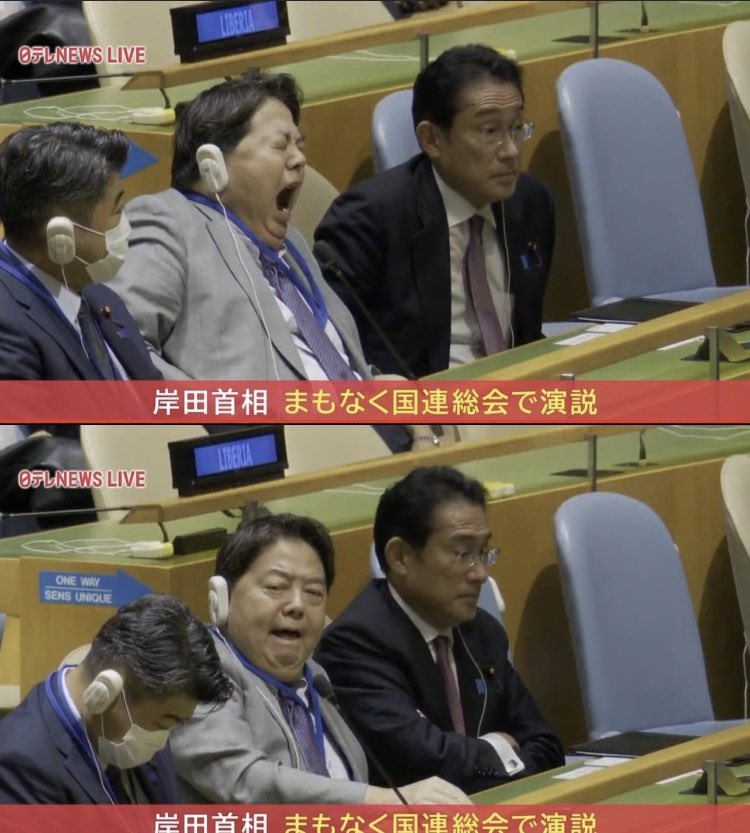 日本時間9月21日朝(ニューヨーク時間9月20日)、岸田首相は、第77回国連総会において一般討論演説を行いました。その演説前に、林芳正外務大臣が“大あくび”をしている姿がSNSで拡散され話題になっています。