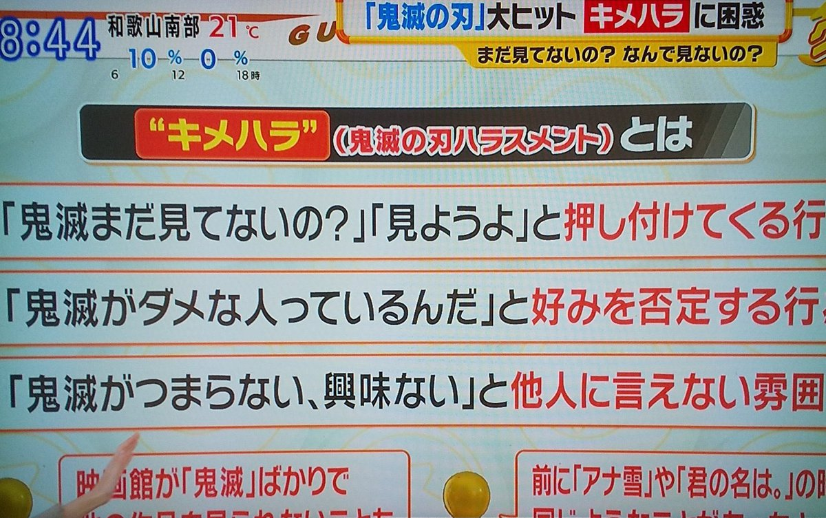公開から24日で興行収入204億円と空前の大ヒットの同作。しかし、その一方で、同作を見ていない人が、見た人から「まだ見てないの?」と強めに好みを押しつけられるなどの行為が「キメハラ」と呼ばれ、SNSのトレンドワードとなっているという。