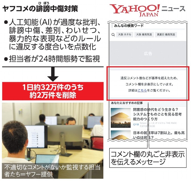 「Yahoo!ニュース」は、ユーザーがニュースに関する多様な意見を共有しあい、新たな視点を得るきっかけを創出することを目的として、2007年からコメント欄を提供。誹謗中傷などの内容を含む投稿を禁止し、不適切なコメント投稿の抑止に取り組んでいます。