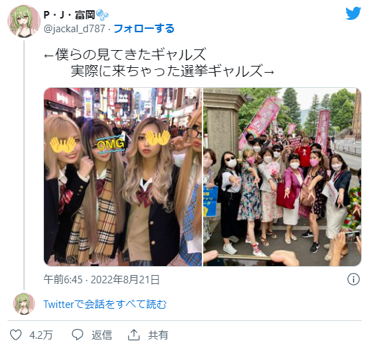 この報道に対してネットでは、国葬の賛否よりも❝ギャル❞について話題になり、SNSで大盛り上がり。