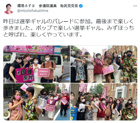 この日は「ラブ&ピース・パレード」と称し、軽快な音楽に合わせて「国葬うちらは求めていない」などと訴えながら、日比谷公園から日本橋まで約2キロを行進しました。また、福島みずほ議員も参加しており、自身のTwitterで「楽しかった」とコメントしていました。