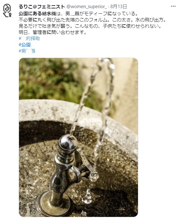 この奇想天外な思考にはネット民も仰天しているようで、「中学生男子でも蛇口に発情はしないぞww」「バナナやキノコ類がスーパーから消えそう」などとコメントしています。