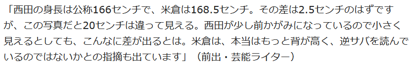 西田さんの体型は小柄なほうで、身長は166cmだと公称されています。