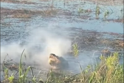 アメリカでワニが空中に浮かんでいたドローンを餌と勘違いして噛みつき、話題を呼んでいます。