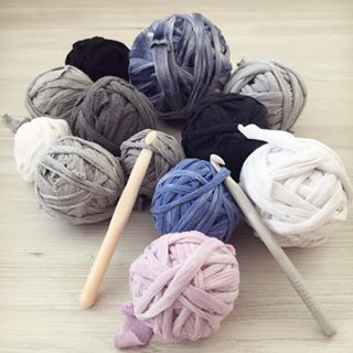 Tシャツヤーンをたくさん作って貯めておくと作品に幅が出るので、暇がある時にはTシャツを切ってヤーンにしておくのも楽しいですね。