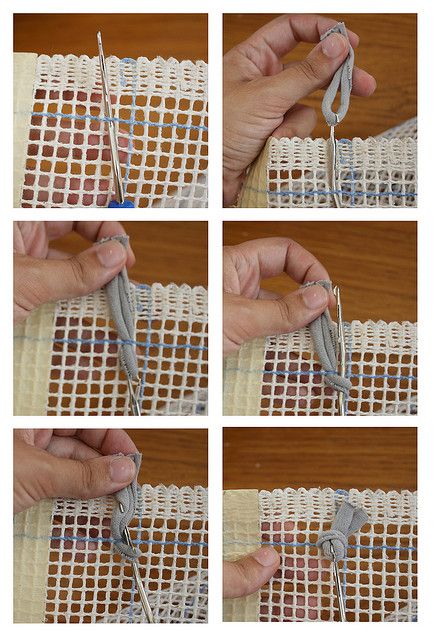 100均などで購入できる滑り止めマットを使うのです!滑り止めマットの網目にかぎ針で細く切ったTシャツを通すだけなのです。かぎ針で通す以外には切ったTシャツを滑り止めマットの網目に通して結びつけるやり方もあります。