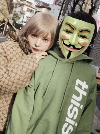 目元は隠されているものの、すっと通った鼻のラインや益若さんに似た口元が見えます。
