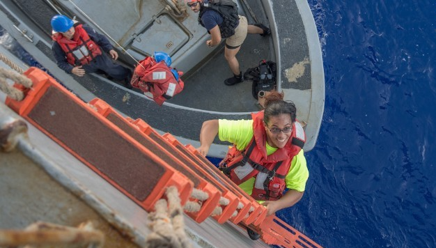 漁船が米沿岸警備隊に通報し、警備隊から連絡を受けた米海軍が、近くの海域で訓練中だった佐世保基地所属のドック型揚陸艦「アッシュランド」を現場海域に派遣して、2人を救助しました。