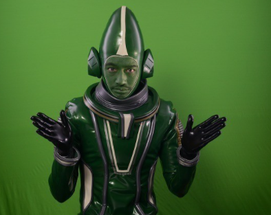 さらに、謎の宇宙人役として2017年に公開された映画「蠱毒 ミートボールマシン」に出演。顔面は緑に塗られており、全身緑色のスーツを着用、とんがり頭に奇抜な姿で登場しています。