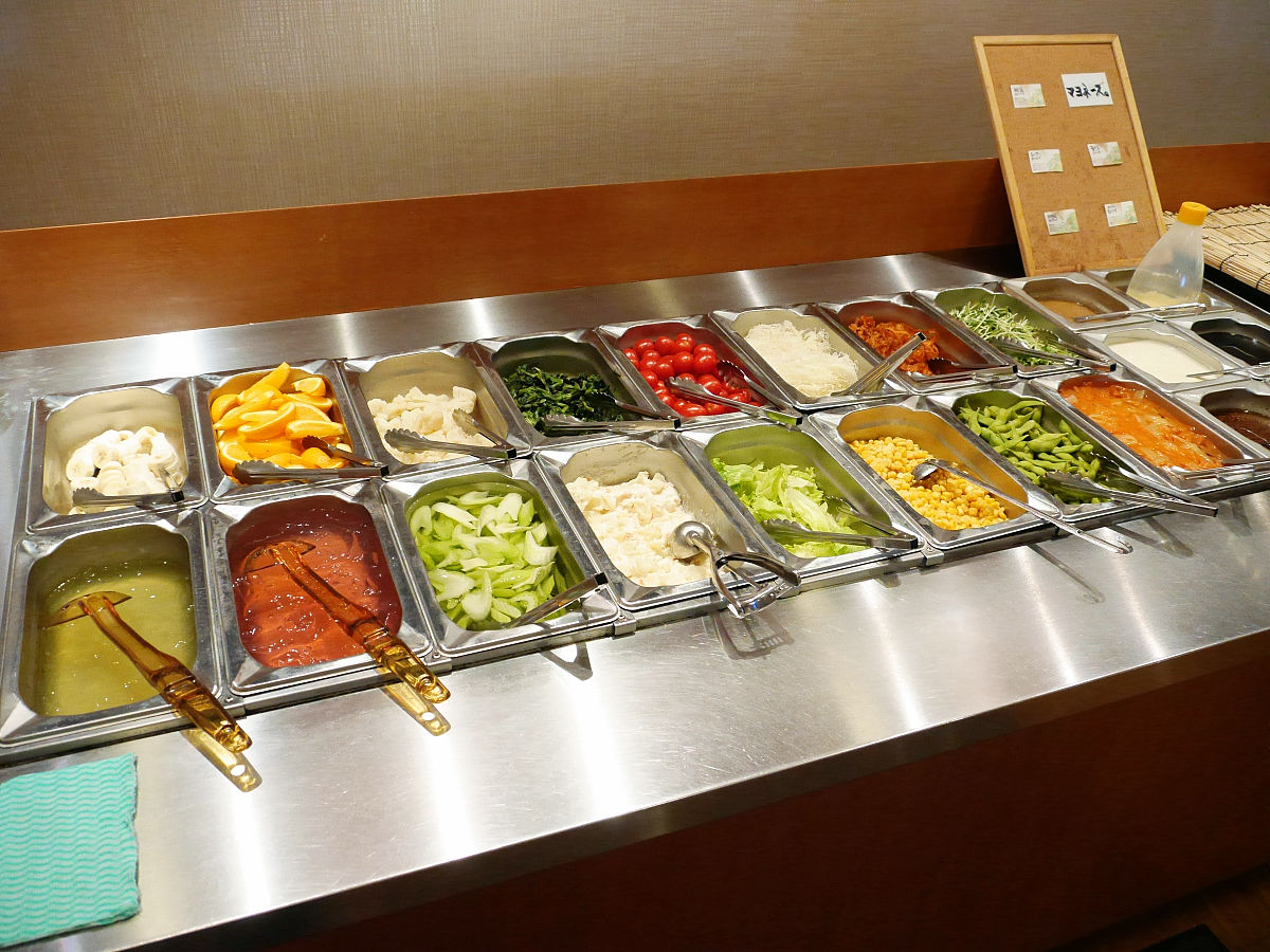 楽しみ方の定番コースは、まずメインを選び、サラダバーへ移動しましょう。料理が提供されるまで常時20種類以上の新鮮な野菜・フルーツを楽しんでください。食べているうちにメインメニューが登場します。せっかくですから、ステーキをカットしたときの端肉が入った、けん特製のカレーも一緒に味わいましょう。食後はひんやりデザートでしめくくりです。