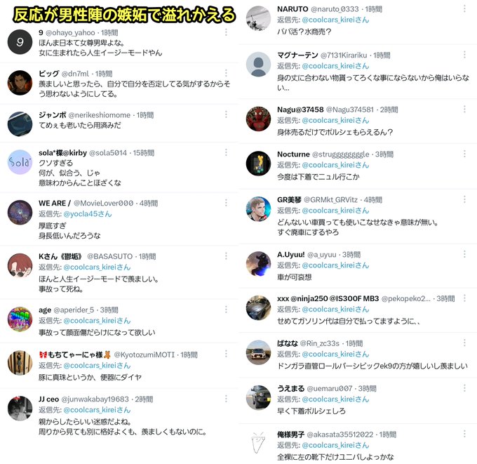 といった具合に、本当は羨ましくてたまらないのであろうコメントが押し寄せました。