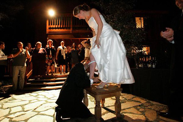 挙式後になんと新郎が花嫁のスカートの中に潜り込んで左足のガーターベルトを口で外します!そしてブーケ・トスのように後ろを振り向かず未婚の男性に投げます。