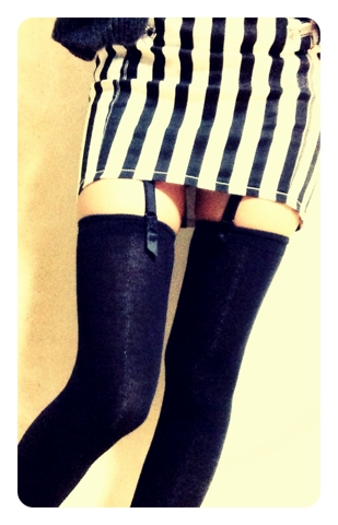 ガーターベルトは太もも丈のワンピースとの相性が良いです。