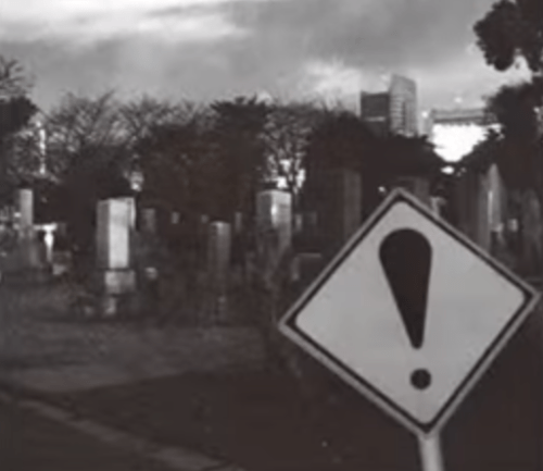 「!」マークが幽霊の危険を警告しているという都市伝説で、一番有名な話が青山霊園にある「!」の道路標識。墓地にポツンと「!」マークの標識だけ立っているとのこと。。