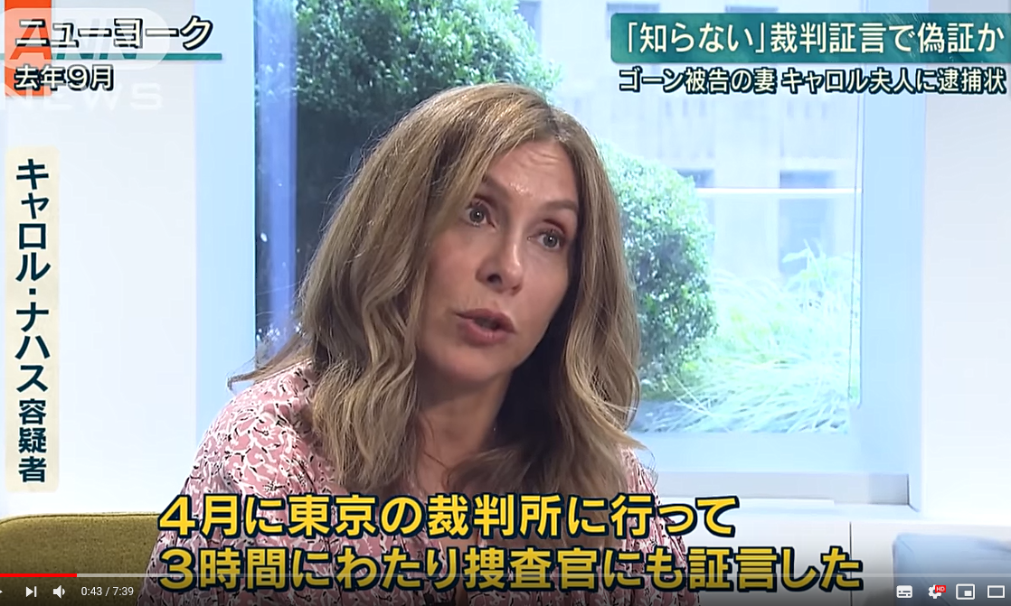 キャロル容疑者は、実際にはゴーン被告の指示で送金していた事件関係者と多数回、メッセージのやりとりをするなどしていたのに、「知らない」などとウソの証言をした疑いがあるということです。