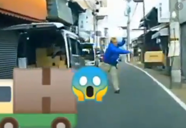 動画には 男性が軽ワゴン車の荷台から段ボールを取り出し、道路の反対側に向かって投げる様子が記録されていました。