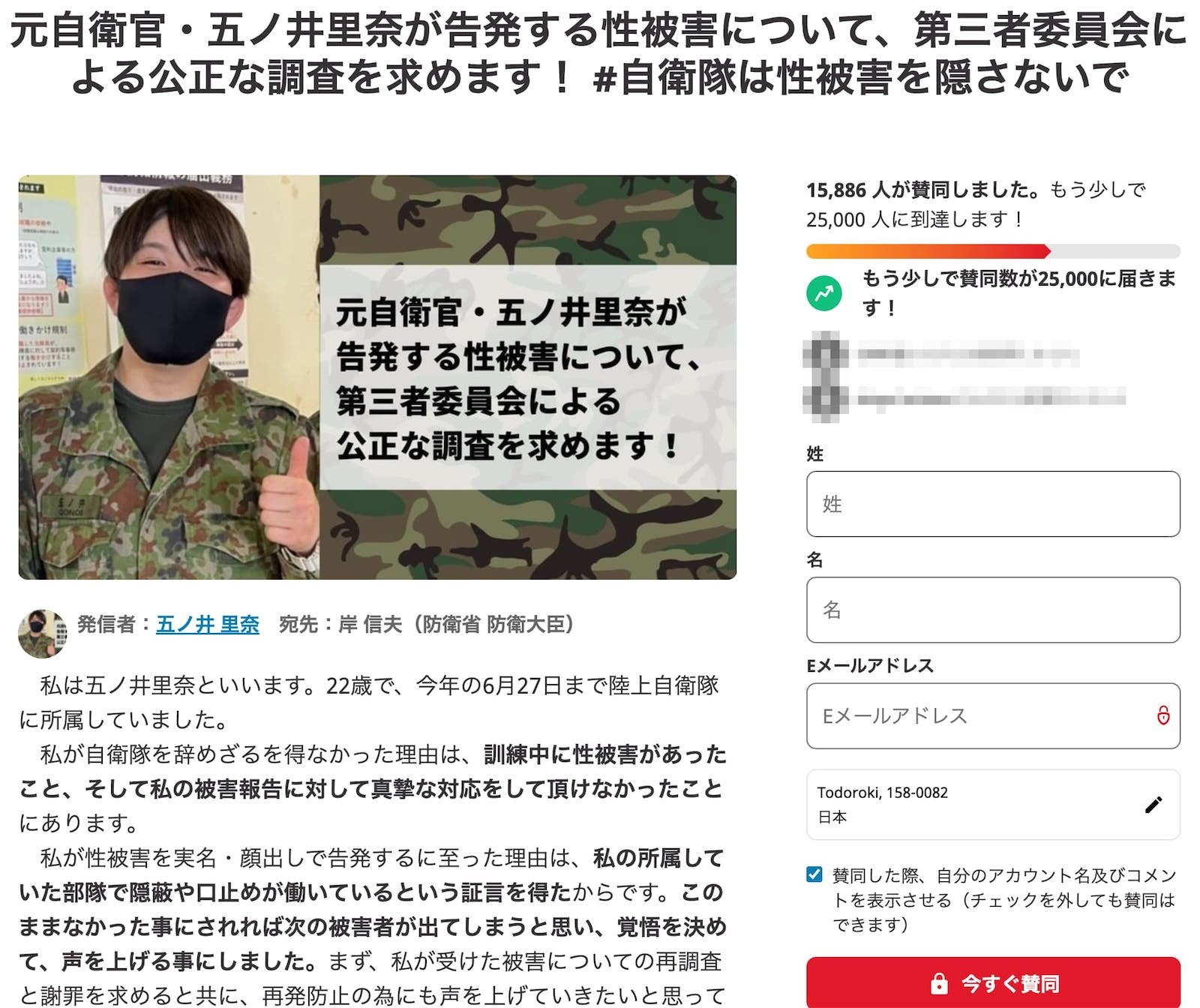 元女性自衛官の告発が大きな波紋を広がっています。それは男性隊員によるセク◯ラをYouTubeで訴えた五ノ井里奈さんです。五ノ井さんは「所属は野戦特科の部隊で隊員58人のうち女性は5人でした。廊下で抱きつかれたり、『お◯ぱい大きいな』などのセク◯ラ発言は日常的。それでも上官に報告すれば、自分が居づらい雰囲気になるだけだと思って耐え続けた」と話します。