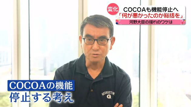 河野大臣は会見でこのように述べた上で、「COCOA」について、今後アンケートなどを実施した上でサービスを停止すると発表しました。ココアは新型コロナの感染者と濃厚接触した可能性を知らせるスマートフォン向けアプリで、2020年6月から今年8月末までのダウンロード数はおよそ4000万件でした。