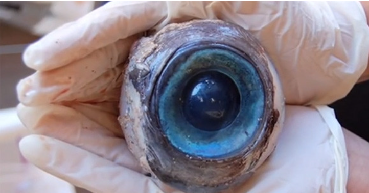 この不気味な目だけの漂流物は、魚類や野生生物の研究者のところへ送られ、メカジキの目だと断定されました。