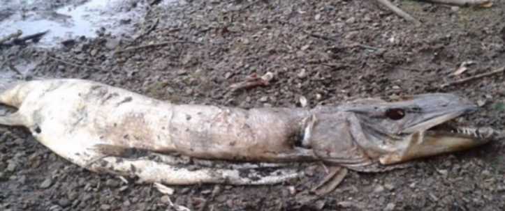 カワカマスのようだが、住民はここにそんなに大きなカワカマスが生息しているとは初耳だと言う・・・。古代生物ではないかと言う人もいるようです。