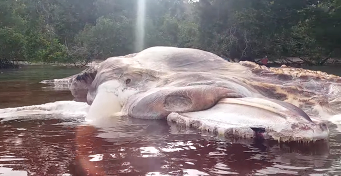 2017年5月、インドネシアのセラム島の水辺に打ち上げられた15メートルの生物。