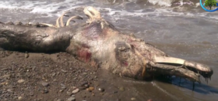 2015年、ロシア、サハリンの海岸に、正体不明の生き物の腐敗した遺骸が漂着しました。