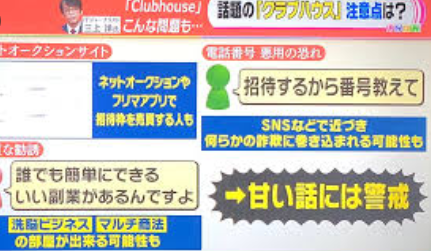 現在絶賛されているクラブハウスですが、実は個人情報に関する危険性があらわになっているとし、詐欺被害まで出てきているようです。こうした負の面もメディアはきちんと知らせるべきでしょう。