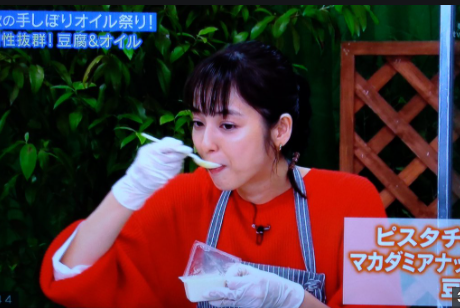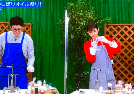 また、実際にしぼりたての油を試食する場面では他のゲストと共に健気なリアクションも見せていました。