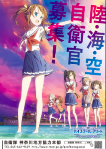 ポスターは、人気アニメの女性キャラクター3人が、ミニスカート姿で跳躍している様子を描き、「陸・海・空 自衛官募集!」などと書かれています。このうち2人のスカートに下着のような黒っぽい着衣が見えているのです。同本部の説明では、ポスターは若い世代にアピールするため、民間会社と提携して作成し、昨秋に公開したそうです。このポスターは、県内の地方協力本部の地域事務所などに掲示しているほか、同本部のホームページにも掲載されています。