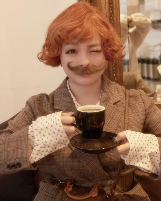 今回話題となったのは、4つめの会報誌のカットで、写真のきゃりーはチェック柄のジャケットに口ひげをつけてコーヒーカップを手に。店内の雰囲気ともマッチしていてレトロな1枚となっています。