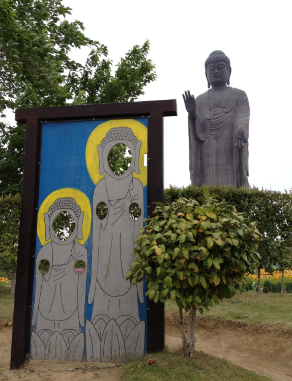 そこには丸山さんと「知らない子供」が牛久大仏が並んだ顔出しパネルから、顔を出している写真が。