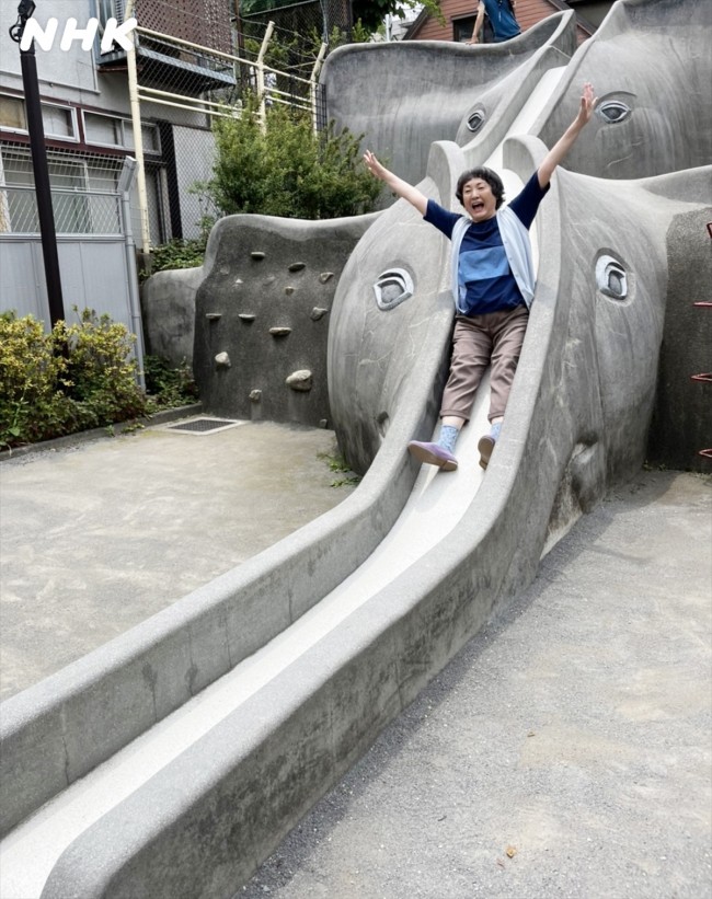 番組では、公園で泣くシーンを撮影した直後に滑り台を見つけていた松坂が、両手を上げてうれしそうに滑り台を滑るシーンが放送されました。