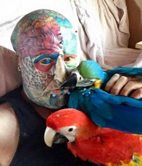 彼はさらにオウムと似せるため、現在は鼻をクチバシのようにとがらせる計画を練っているようです。