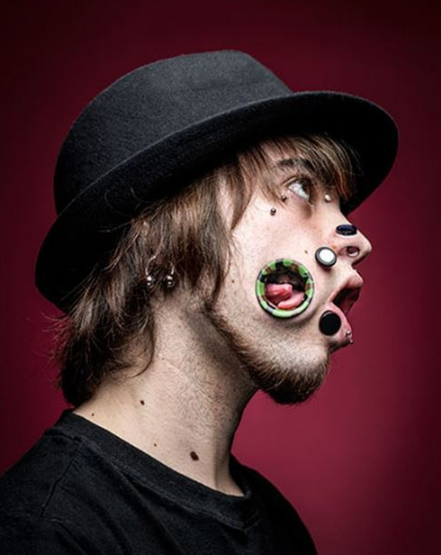 彼はタトゥーアーティストでもあり、自分の体をキャンバスにしてユニークなピアシングを行っています。