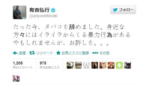 有吉さんのツイッター、禁煙当時は大変きつそうでした。やめたくてタバコをやめた人は良いですが、体調を崩しやめなければいけない人にとって禁煙は辛いです。