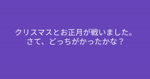 ”クリスマスとお正月が戦いました。” 簡単そうに見えてかなり難しいクイズ問題に挑戦してみましょう 今回ご紹介するのは脳トレクイズです。 問題 クリスマスとお正月が戦いました。 さて、どっちがかったかな? Google ADVERTISEMENT Google あなたはわかりましたか? それでは答え合わせに行きましょう! Google 答えは、、、「クリスマス」 ADVERTISEMENT 問題文をよく読むと、「どっちがかったかな?」、つまり「どちらがカタカナ?」かを聞いていることがわかります。そのため「クリスマス」が答えになります。 ADVERTISEMENT Google あなたは間違えずに解けたでしょうか! Google [著作権者VONVON /無断コピー、無断転載および再配布禁止(違反時の法的措置) ADVERTISEMENT