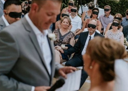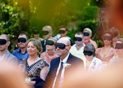 新郎は難病にかかってしまった新婦を配慮し、特別なイベントを用意しました。それは、目の見えない新婦の気持ちを理解するという趣旨で、招待客が全員眼帯をつけて結婚式を進行する、というものでした。これに同意した54名の招待客は眼帯をつけ、2人の結婚式を見守ったのです。