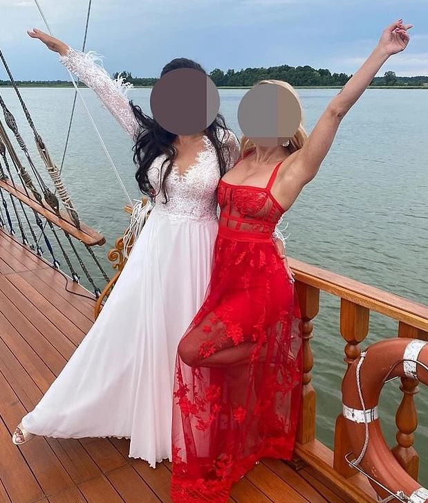 同日、花嫁のウェディングドレスは古典的なスタイルとシルエットで、招待客のセクシーな赤いドレスより確かに保守的に見えたようです。