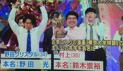 続いて『マヂカルラブリー』のツッコミ・村上さんの本名は、「鈴木崇裕(すずき・たかひろ)」。芸名の由来は村上さんがお気に入りの漫画『東京大学物語』の主人公・村上からとっているそうです。